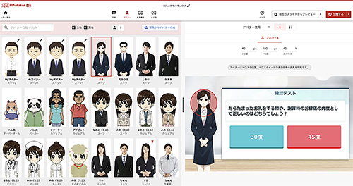 一気に広がるきっかけとなったのは、大手損害保険会社の合併研修用にと数百本単位での制作を任されたことでした。もともとは講師と従業員を集めて行っていた研修を、効率化の観点で動画にして配信したそうなのですが、その動画を作る費用と手間に課題感をお持ちでした。PIP-Maker®であれば、これまで使っていた研修のパワーポイント資料をもとに自分たちで簡単に動画にできますから、大幅に制作費用も時間もカットできたと評価いただいております。またアバターが自分に語りかけてくれることで習熟度や理解度が高まりますし、さらにはURLやQRの共有でいつでもどこでも視聴できるので受講率が上がったとのお声もいただいています。BtoB事業は他社の成功事例を非常に重要視するものなので、この実績がきっかけとなり、大手企業や金融機関を中心に広がっていきました。